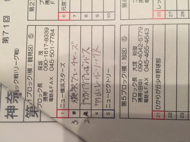 今夜行われた【Bチーム】「教育親善大会」の抽選結果は、添付写真のとおりとなりました。