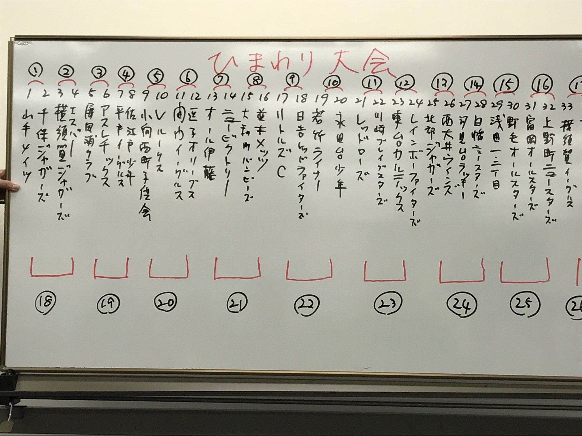 [All:456] 21世紀カップひまわり大会抽選結果 2018/03/312018/03/31 お疲れ様です。 本日行われました21世紀カップひまわり大会の抽選結果は添付の通りです。 ニュービクはオール伊藤野球クラブ(品川)に決まりました。勝てば決勝トーナメントの8へ、負ければ並木メッツと大和町バンビーズの敗者と試合です。門田 iPhoneから送信